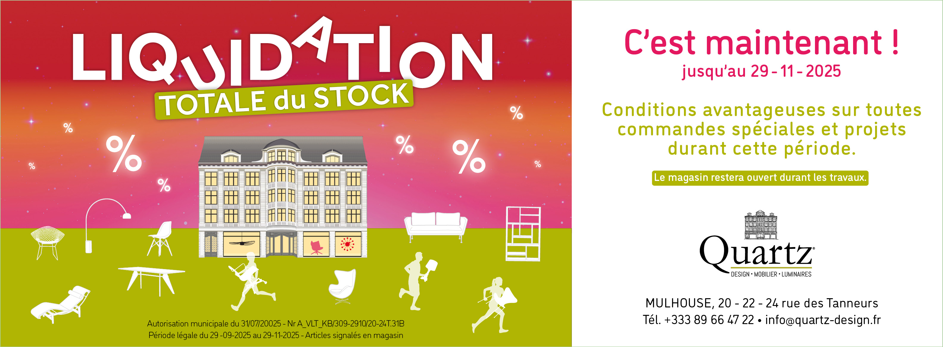 Spécialisé dans le mobilier et la décoration depuis 1865, la maison Klein-Albert crée l'enseigne QUARTZ DESIGN en 1988.